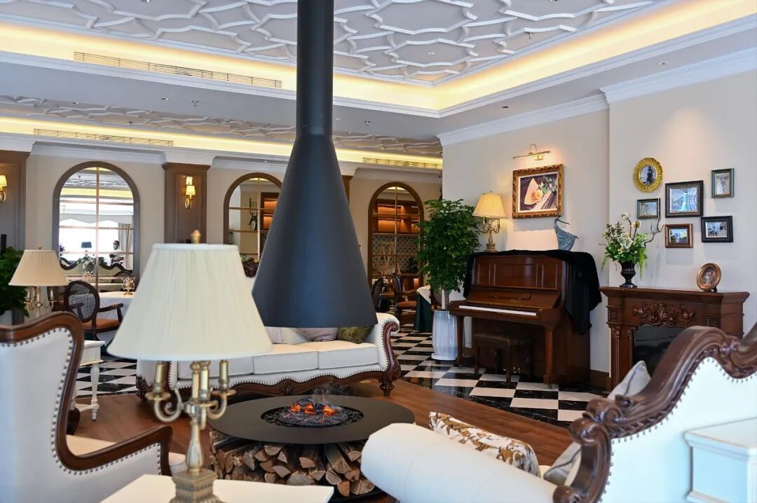 空间内的民国家具、数十幅百年油画,承载着岁月的故事;艺术展陈,赋予空间温度;窗外的田园,则把自然请入生活。推门而入,大堂宛如一幅徐徐展开的画卷,古典与现代在此对话,空间因此获得情感与灵魂。