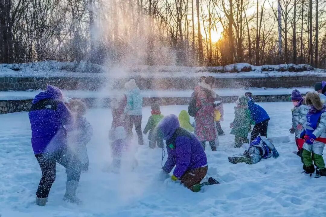寒冬,松峰山谷冰雪相伴,在白雪皑皑中收获温情与欢笑。