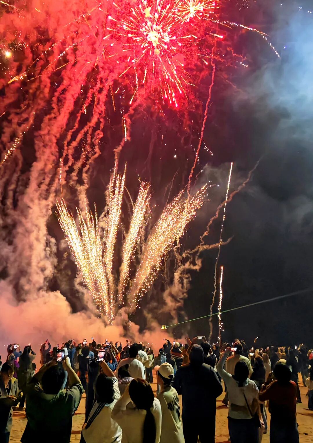 风推浪涌击节奏,童点烟花助管弦。