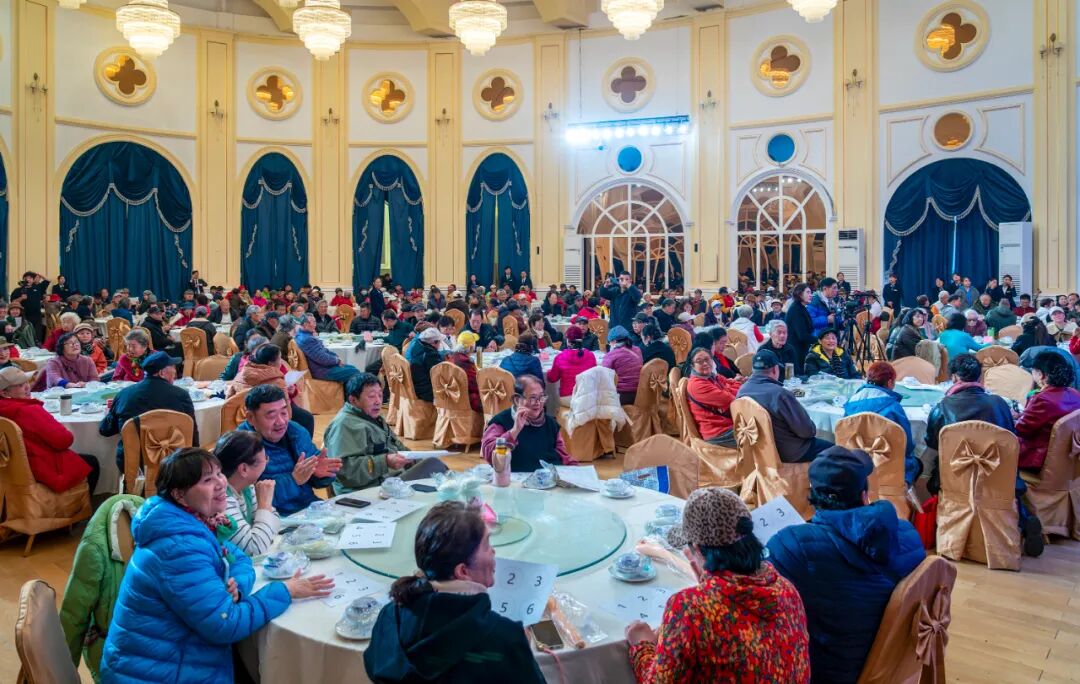 农历九月九日,天高云淡,秋色满湾。当日近400位70岁以上的长者,着装缤纷,神采奕奕,闪耀着生命的活力,相聚在东戴河山海同湾的金色大厅里。