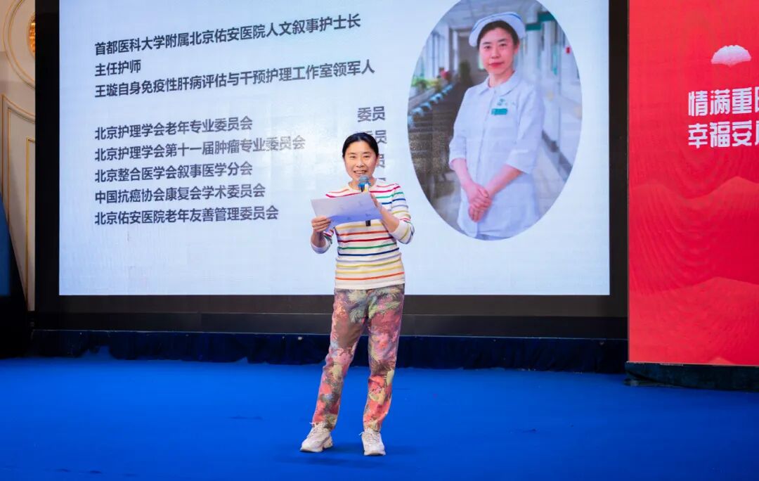 同湾业主,首都医科大学附属北京佑安医院人文叙事护士长、主任护师、北京护理学会老年专业委员会委员——王璇老师,为大家带来一堂贴心又实用的健康课堂。她的讲解生动有趣,期间带动大家一起做广播体操,笑声、掌声和轻快的音乐交织在一起,温暖的气氛在金色大厅中流淌。