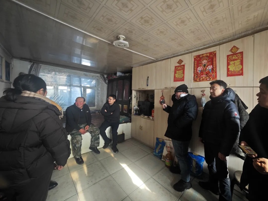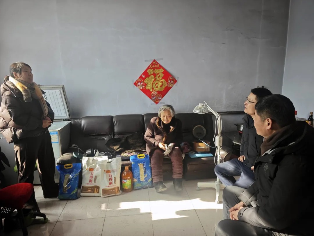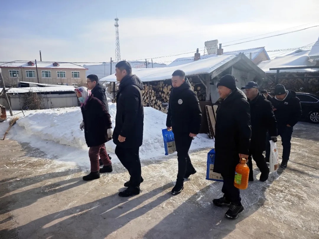 2月6日,在哈尔滨松峰山镇,盛邦基业哈尔滨公司与镇领导一同走进老党员、患病及独居老人家中。问候与叮嘱、新年祝福连同米面油等生活物资,在岁末寒冬里送进家门。